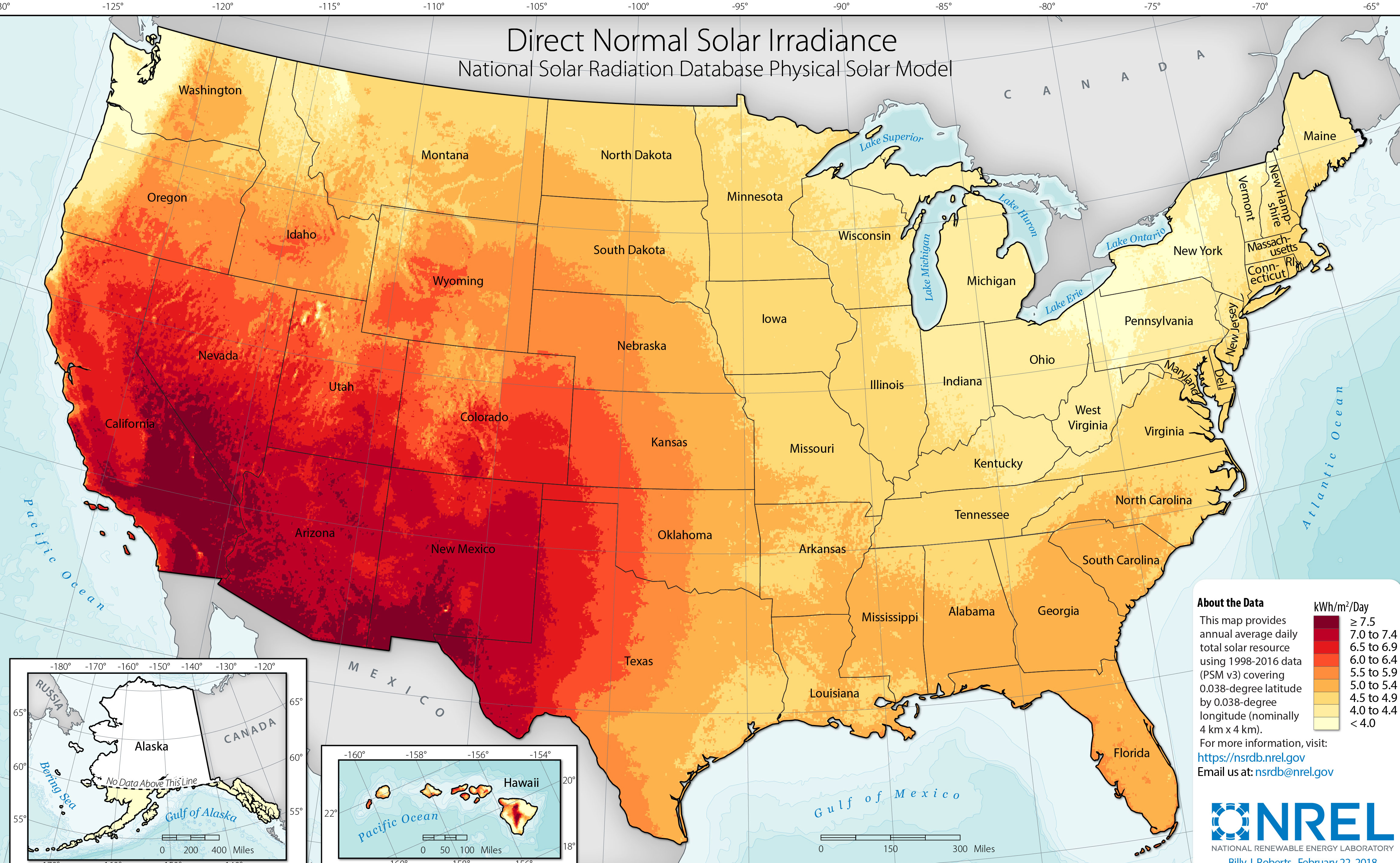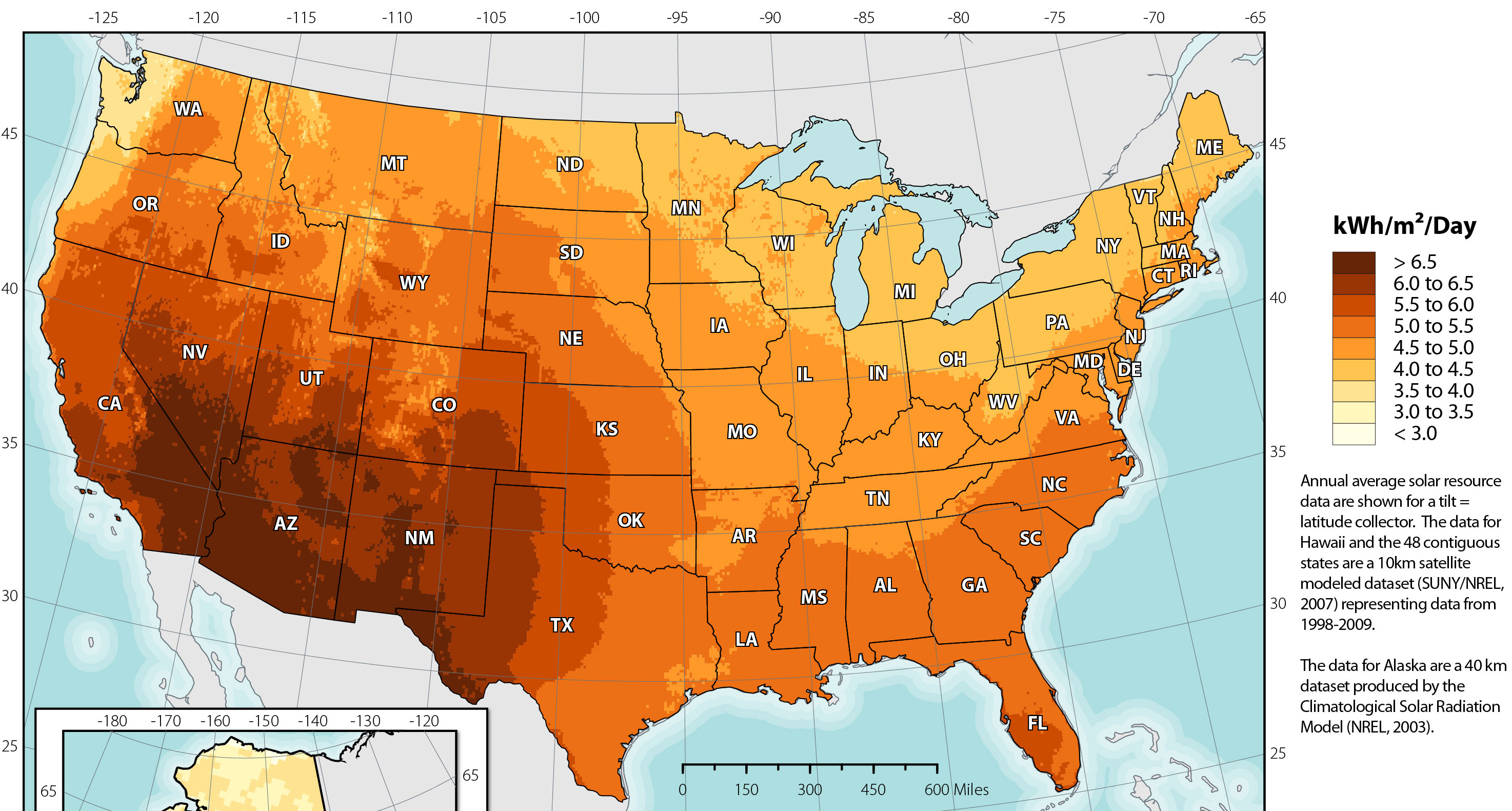 Energy Lab (NREL) Maps of Average U.S. Daily Solar Energy: