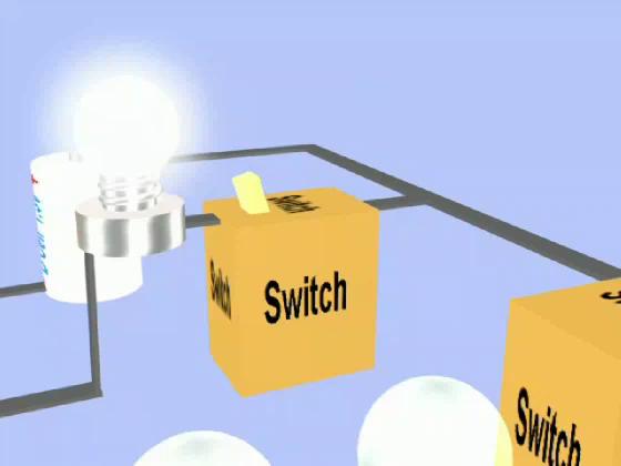 When the second switch is thrown the two light bulbs light, but the potential difference across each is only half of 1.5 Volts.