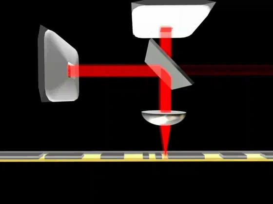 So we must have a way of moving the lens to keep the laser sharply focused on the disk's surface.