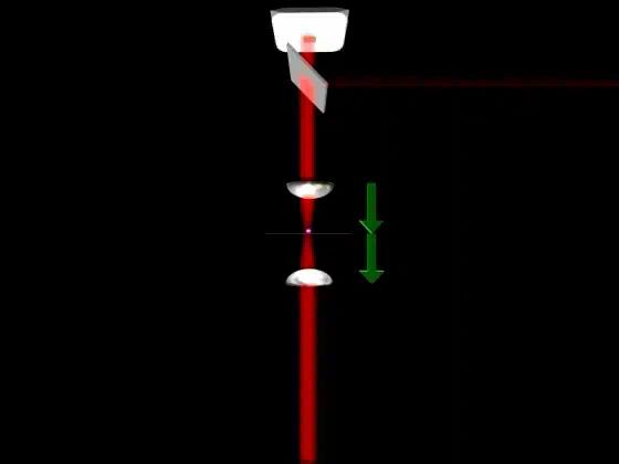 You can then see how lowering or raising disk causes the beam to shrink or grow at the photodetector.