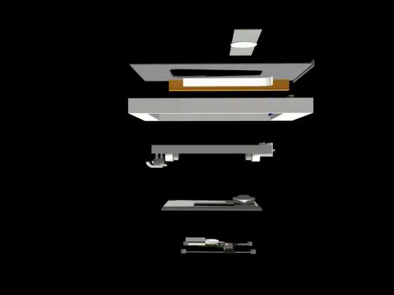 Using the blue cam, the same assembly will be used to lift the rotation motor up to the disk.