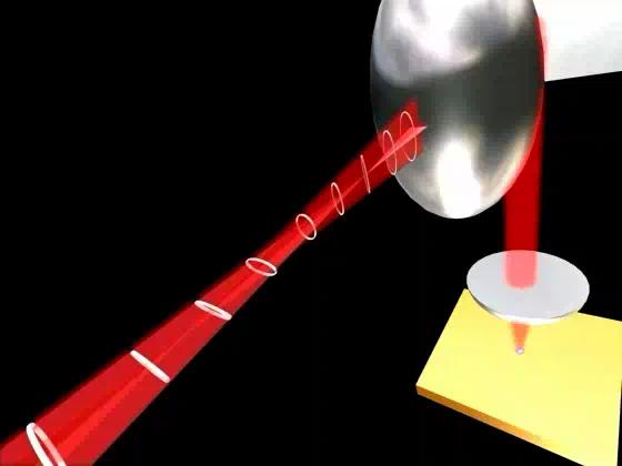 On the other hand, if the disk rises, the beam on the detector shits to a vertical ellipse. The stronger signal to the top and bottom squares then signal the lens to lift.