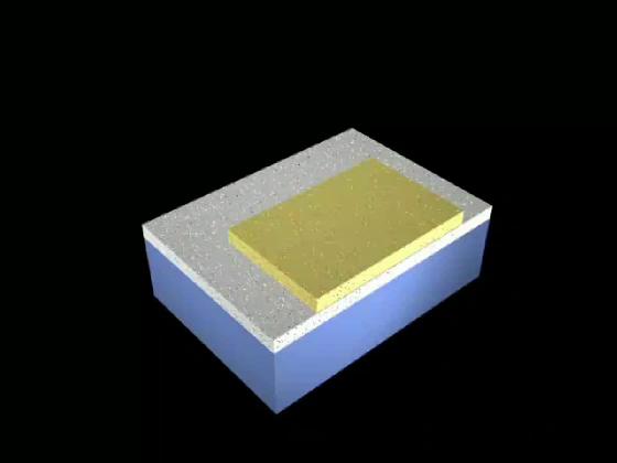 The resulting thick ring of SiO2 encloses what will become the MOS transistor.