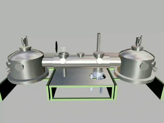 This system has two "ultrahigh vacuum" growth chambers, one at each end. In the center is the chamber into which wafers are loaded and stored before layer growth.
