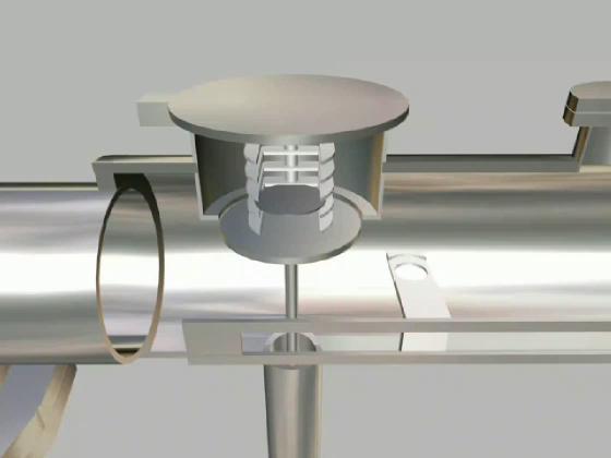 The bottom of the load lock (which also serves as a vacuum seal) is then lowered. The pressure falls to that of the center chamber, which is generally at a vacuum of lower than 10-12 atmospheres (!).