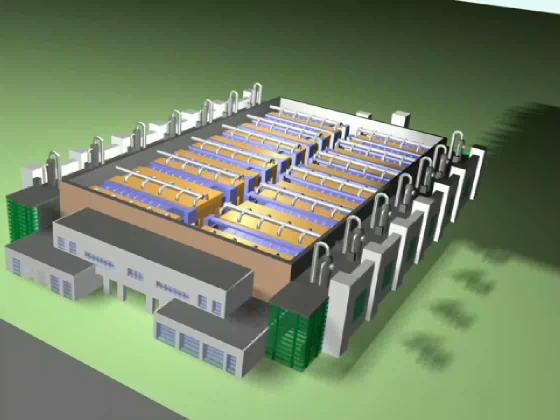 At one time, exhaust was simply sent up tall smokestacks. Instead, in this modern plant, exhaust is piped to the towers on both sides of the building. These towers contain "scrubbers" that trap or neutralize harmful chemicals.