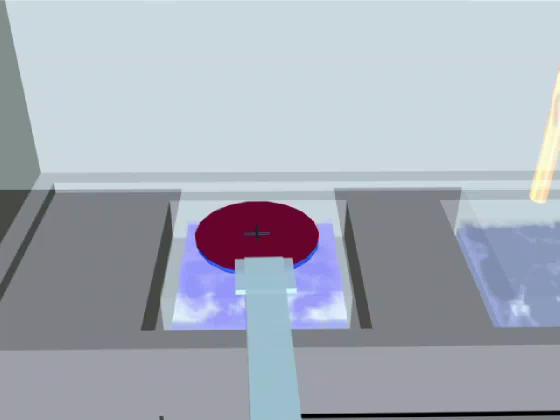 The wafer is dipped in the developer solution and slowly tilted back and forth. This mild agitation ensures that fresh developer can reach the bottom of the windows in which the photoresist, weakened by exposure, is being dissolved.