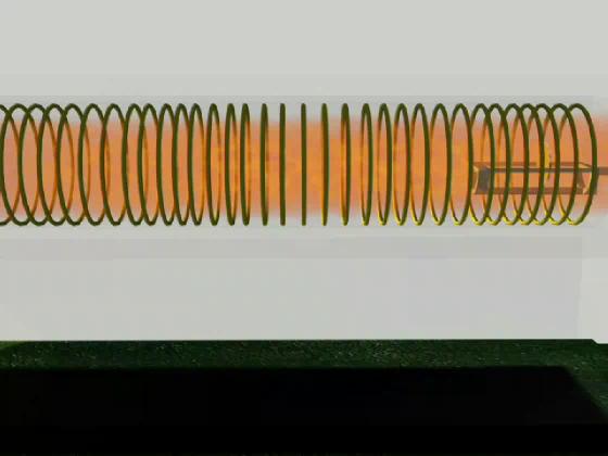 The boat is slowly pushed into the furnace using the pushrod. This slow, start-and-stop movement ensures that the wafers heat uniformly. If this is not done, the wafers will heat unevenly and their non-uniform expansion can lead to stresses so large that it will actually damage the crystal structure of the Si.