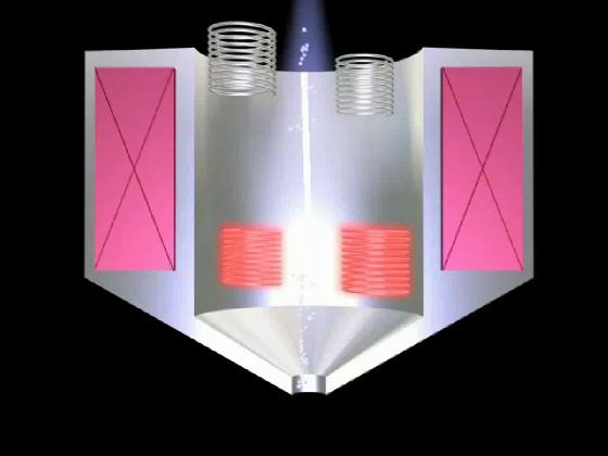 Within the final focusing lens there are also two additional pairs of electro-magnet coils. Current is pulsed through these coils to produce oscillating magnetic fields that scan the beam across the experimental sample.