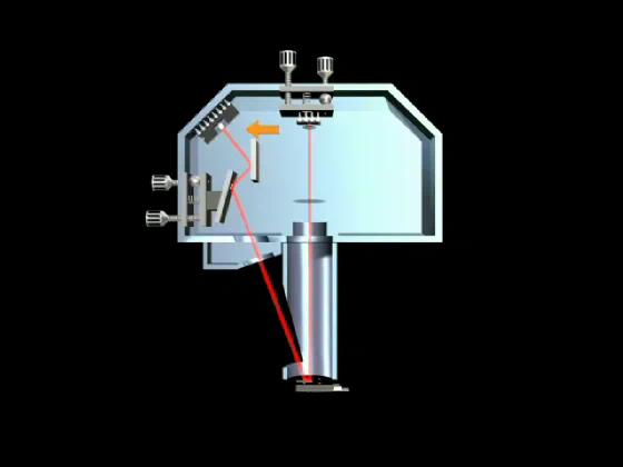 The photodetector is built around a square light-sensing chip which is divided into four quadrants. The circuit monitors the electrical power the light creates in each quadrant.